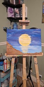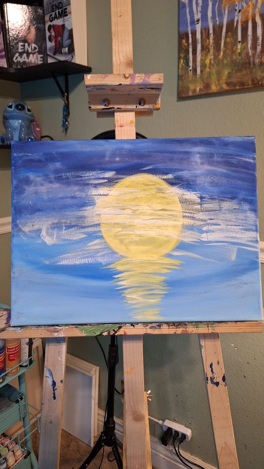 The sky was still a bit of a mess, and there was too much unused space. It needed something more. I decided to change up my vision. Instead of it being the sun, it became the moon. All it needed to finish it off were some birds and some stars. Now, in the words of Bob Ross, sometime we make happy accidents. I sure did. I tried to make a bigger star, but again, I’m not a true artist. Instead, I added a lightning bug.