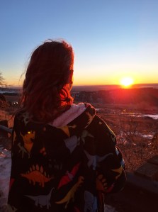 At the crack of dawn, she expressed her desire to witness the sunrise. Despite typically being awake during this time, the morning rush often prevents her from indulging in the serene spectacle.