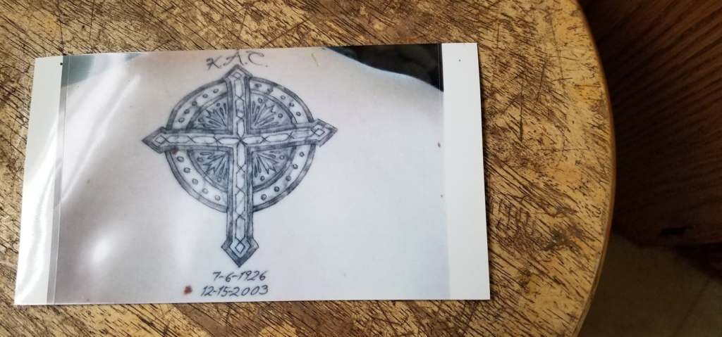 Before my brother tragically took his life, he designed a tattoo in memory of our beloved grandpa. It featured a Celtic cross adorned with our grandpa’s initials and his birth and death dates.